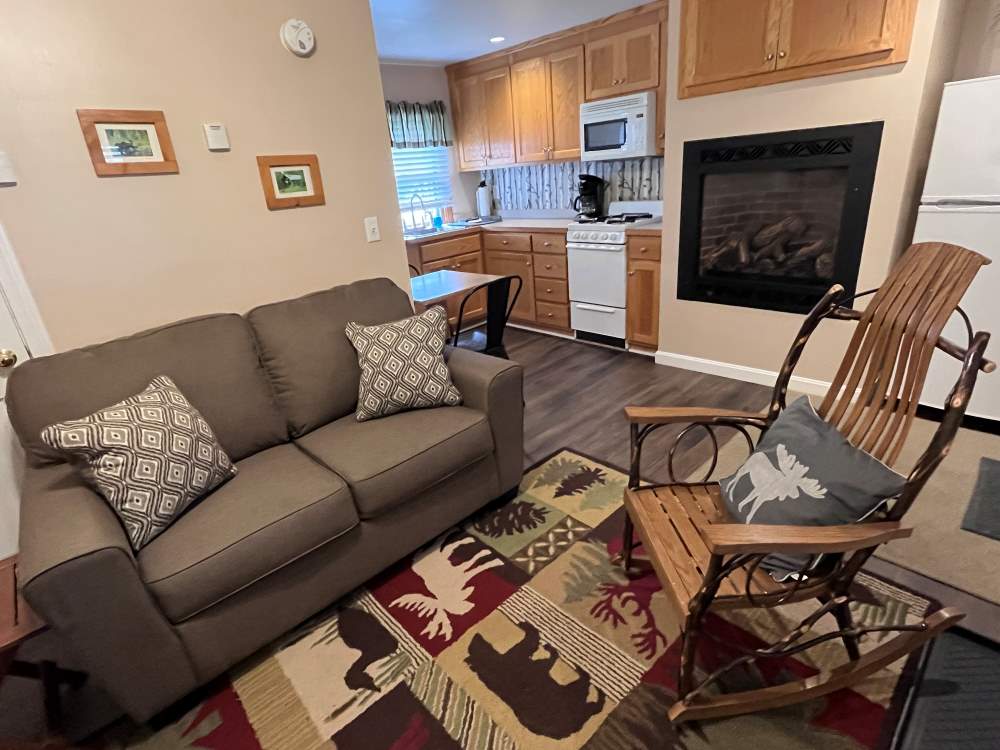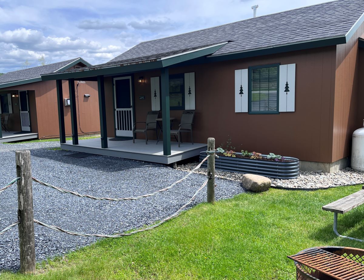 Our two (2) fully equipped Deluxe Cabin Rentals are perfect for couples, featuring 1 bedroom with a queen bed, a private bath, cozy living area and a fully equipped kitchen. These accommodate 2 guests only.