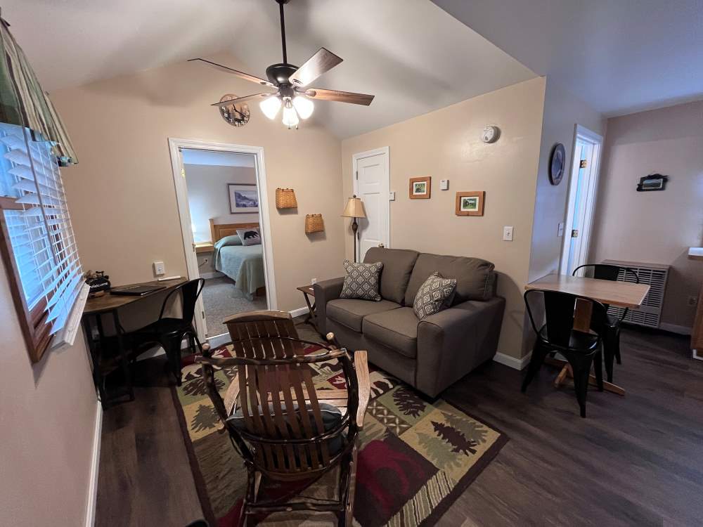 *These two cabins are also available in winter, November – March. Must be booked through links below with our partner, Vacasa or on Airbnb, cannot be booked through the campground*